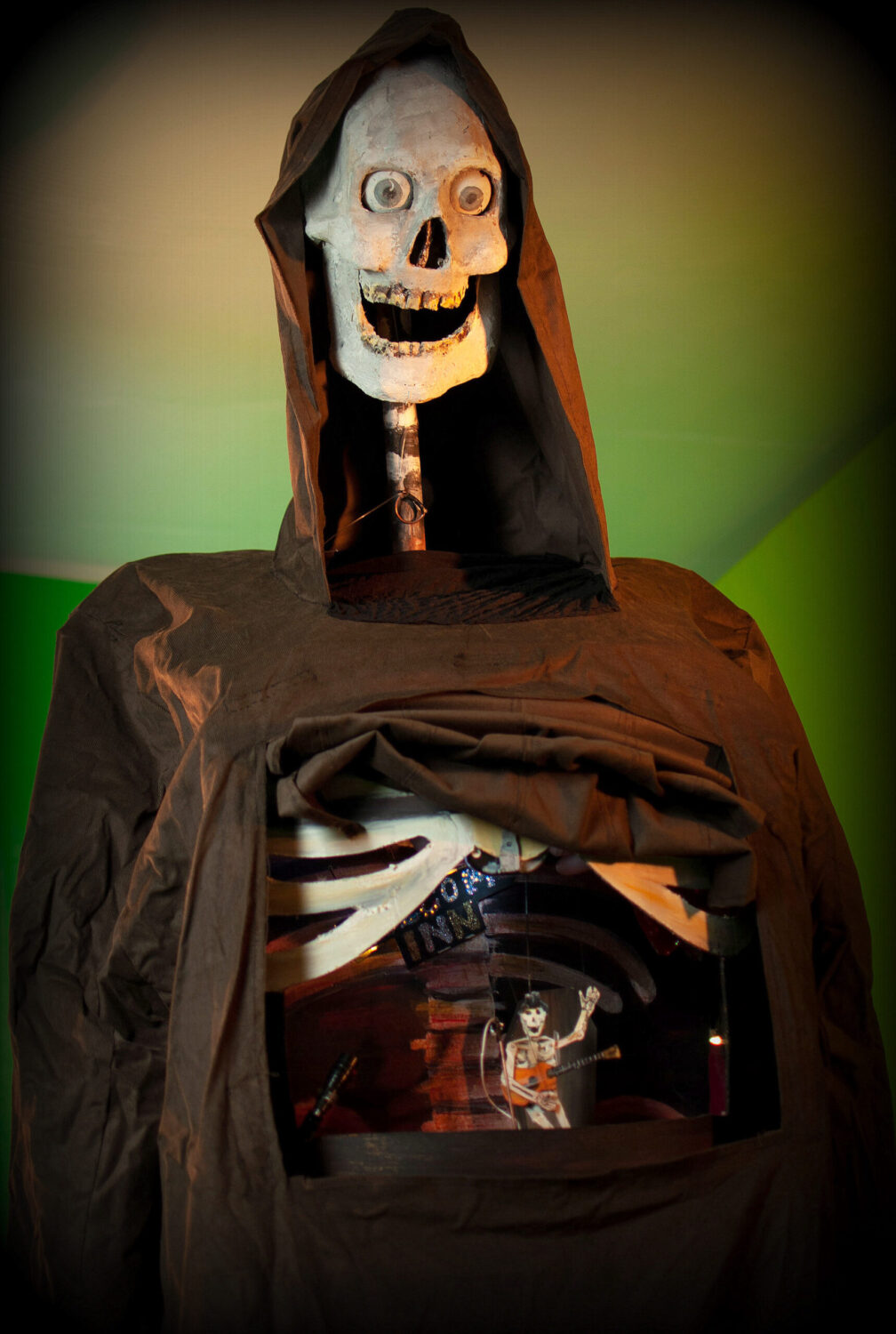 In de ribbenkast bevindt zich een oud stoffig theatertje: “Welcome inn”.